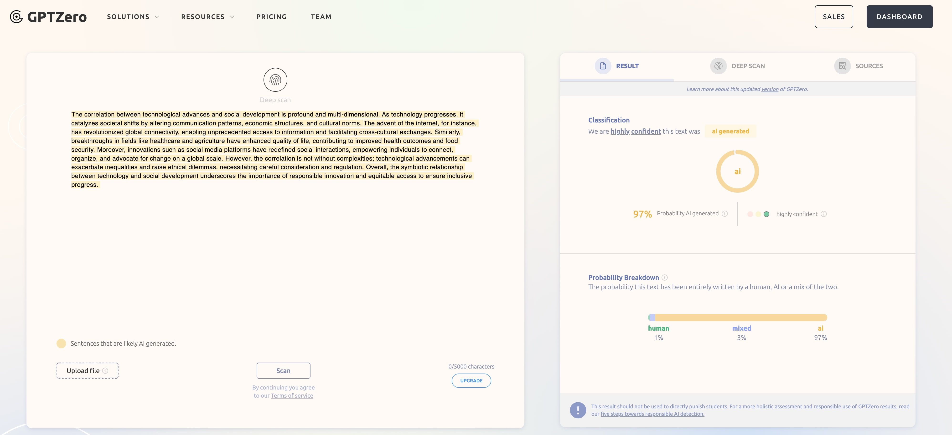 First, we want to use ChatGPT to generate 2 paragraphs for better testing accuracy. For the first testing paragraph, we are asking ChatGPT to write about the correlation between technology advances and social development.