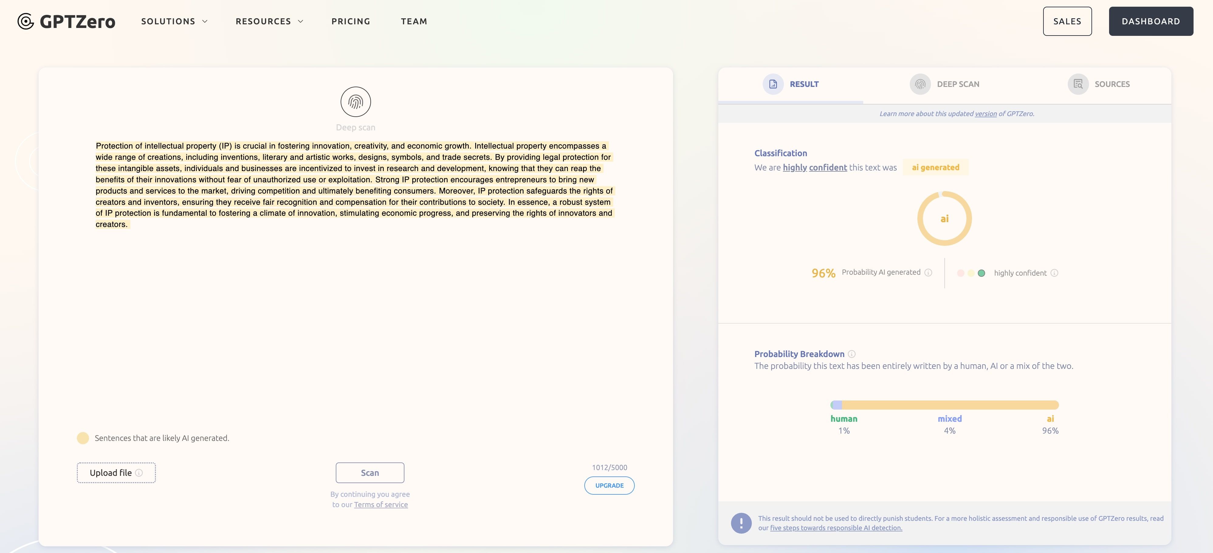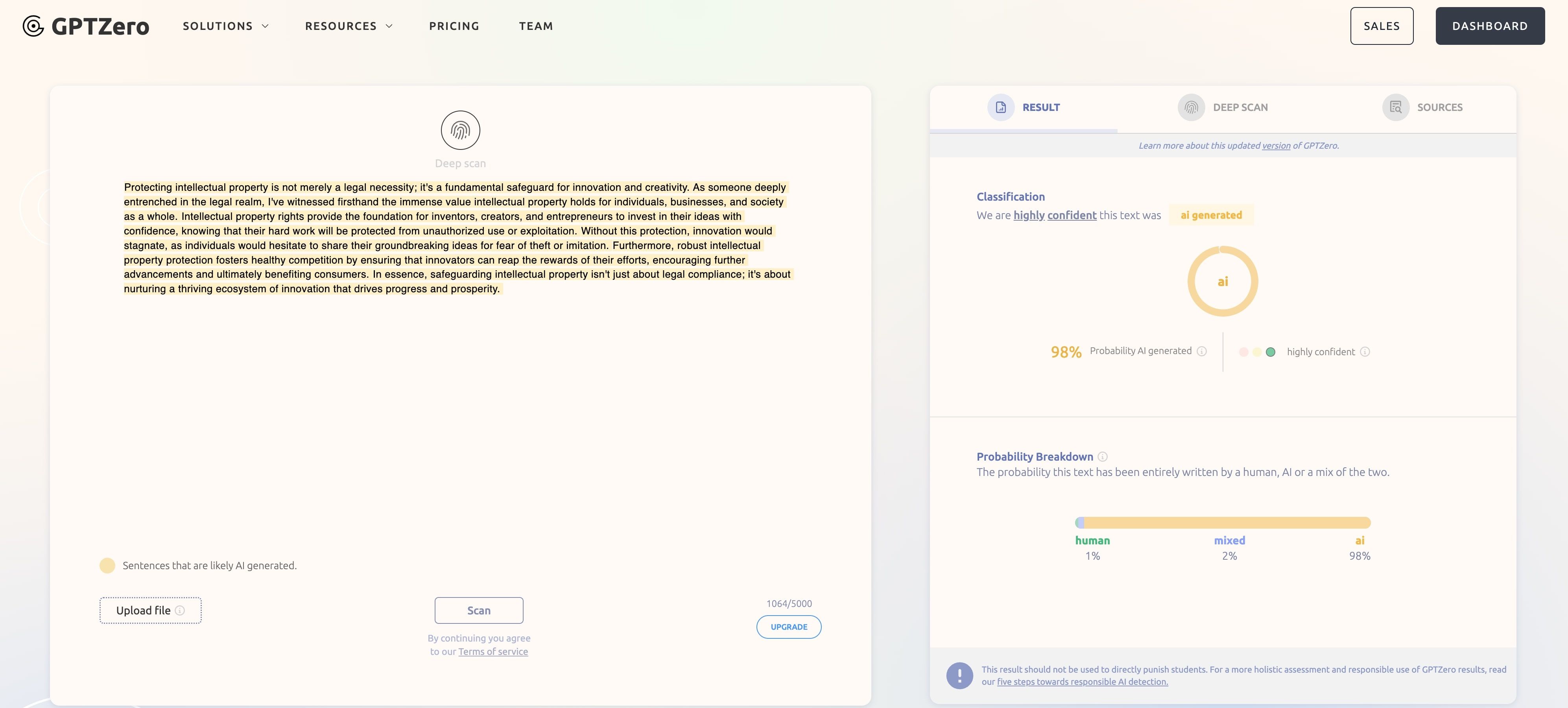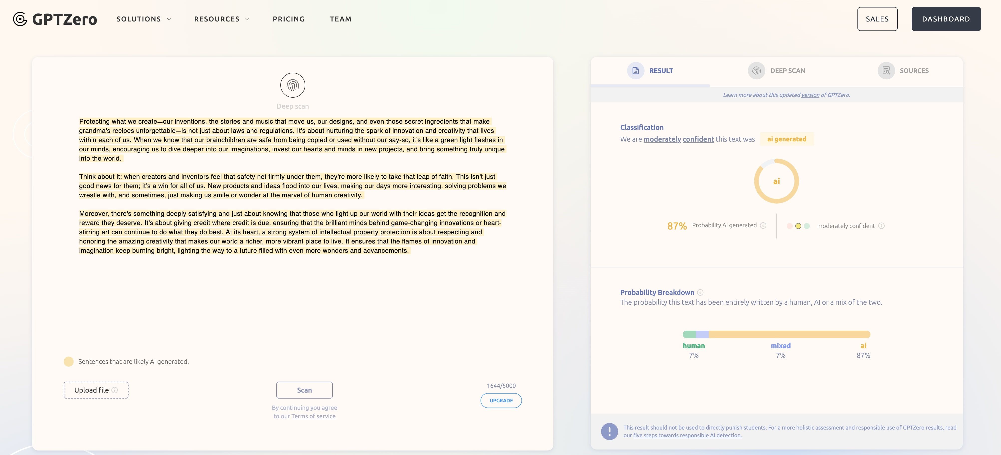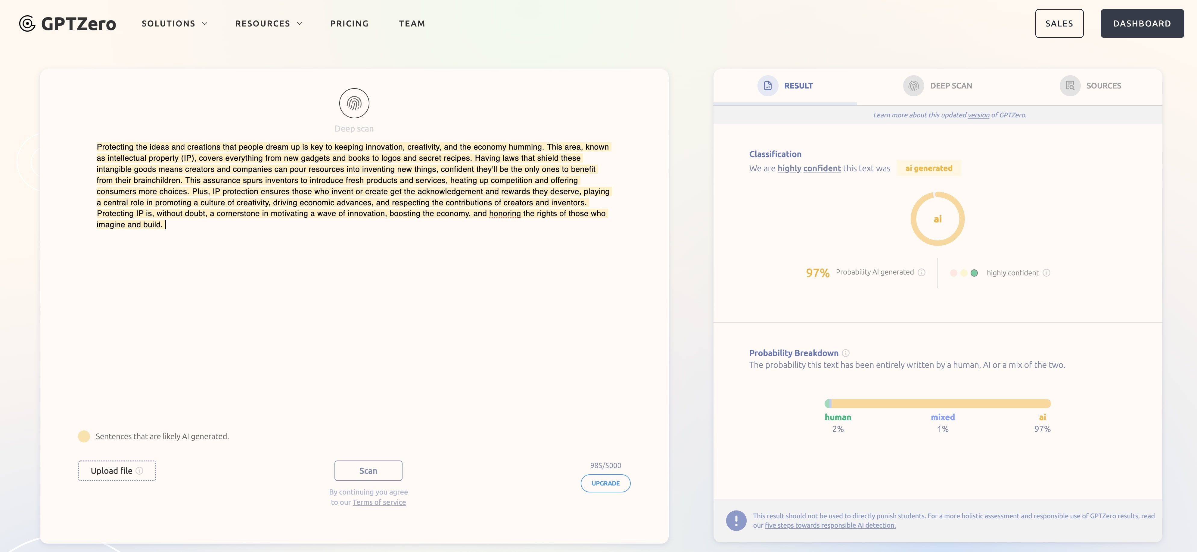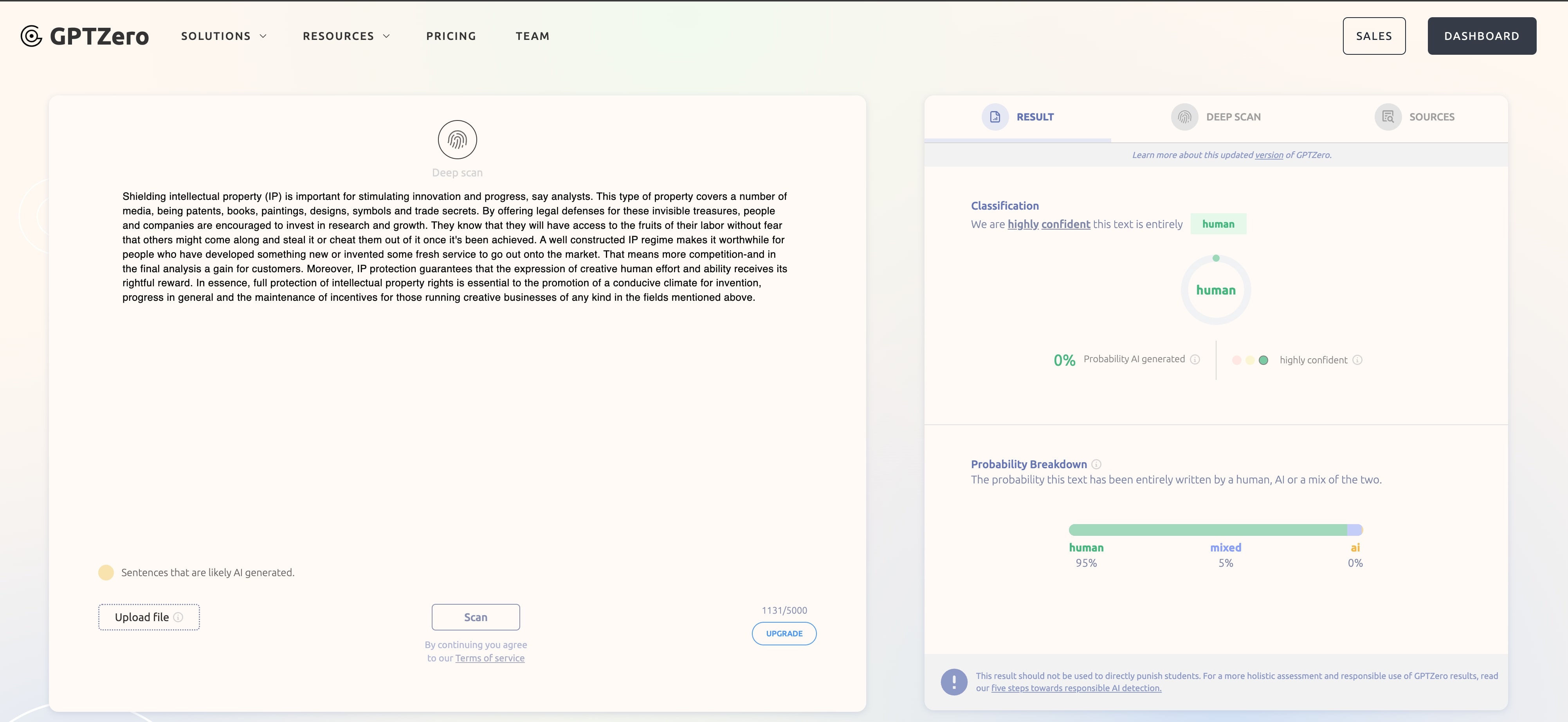 Now, let’s see the results from the 2 mentioned AI content detectors.