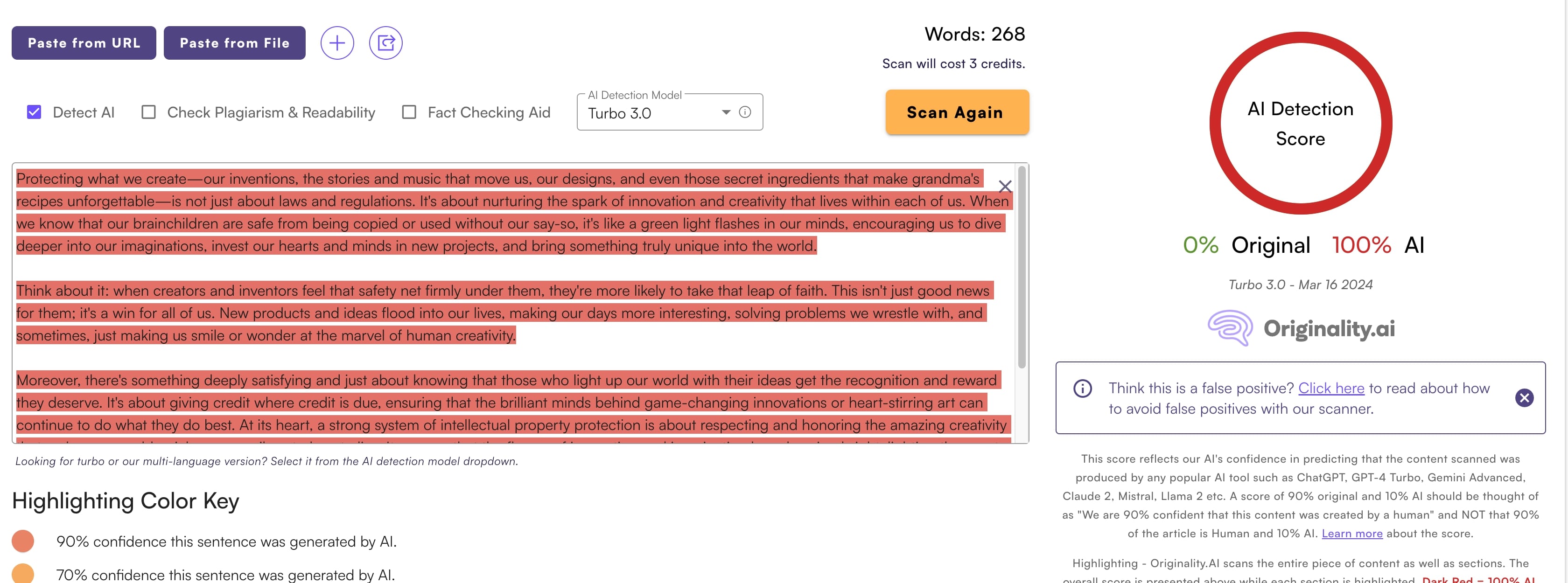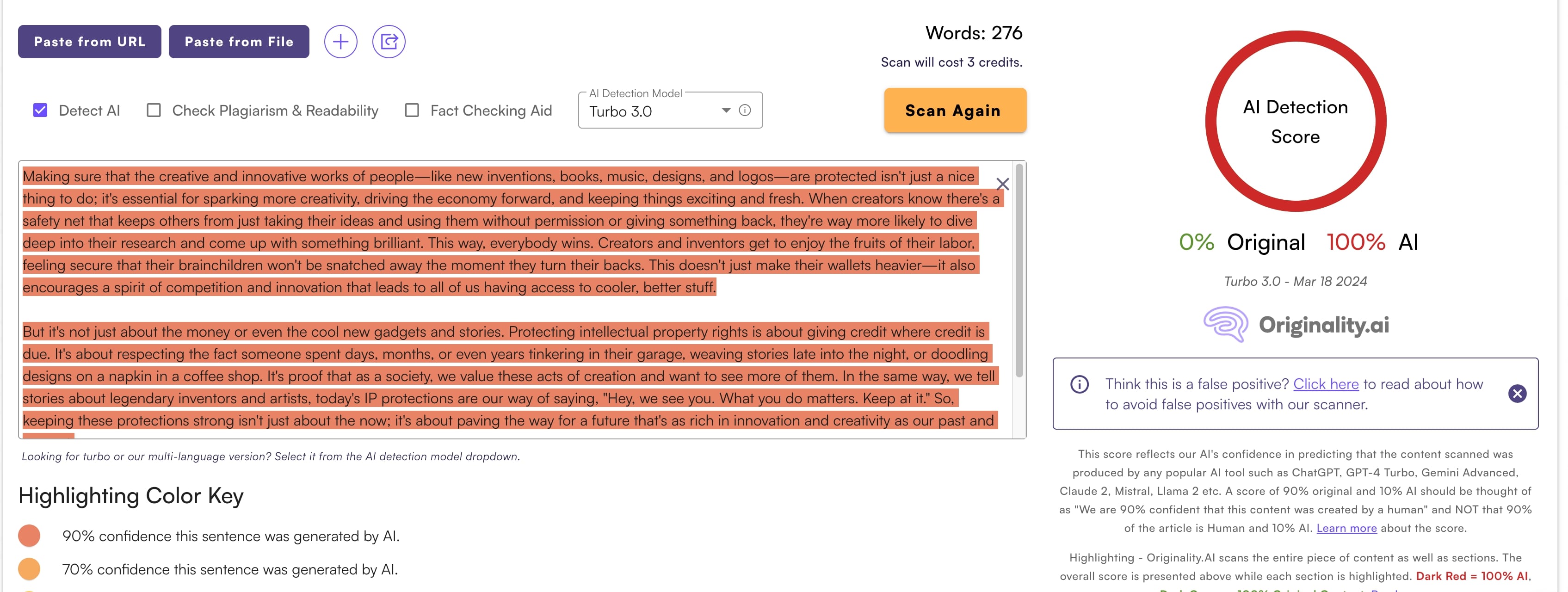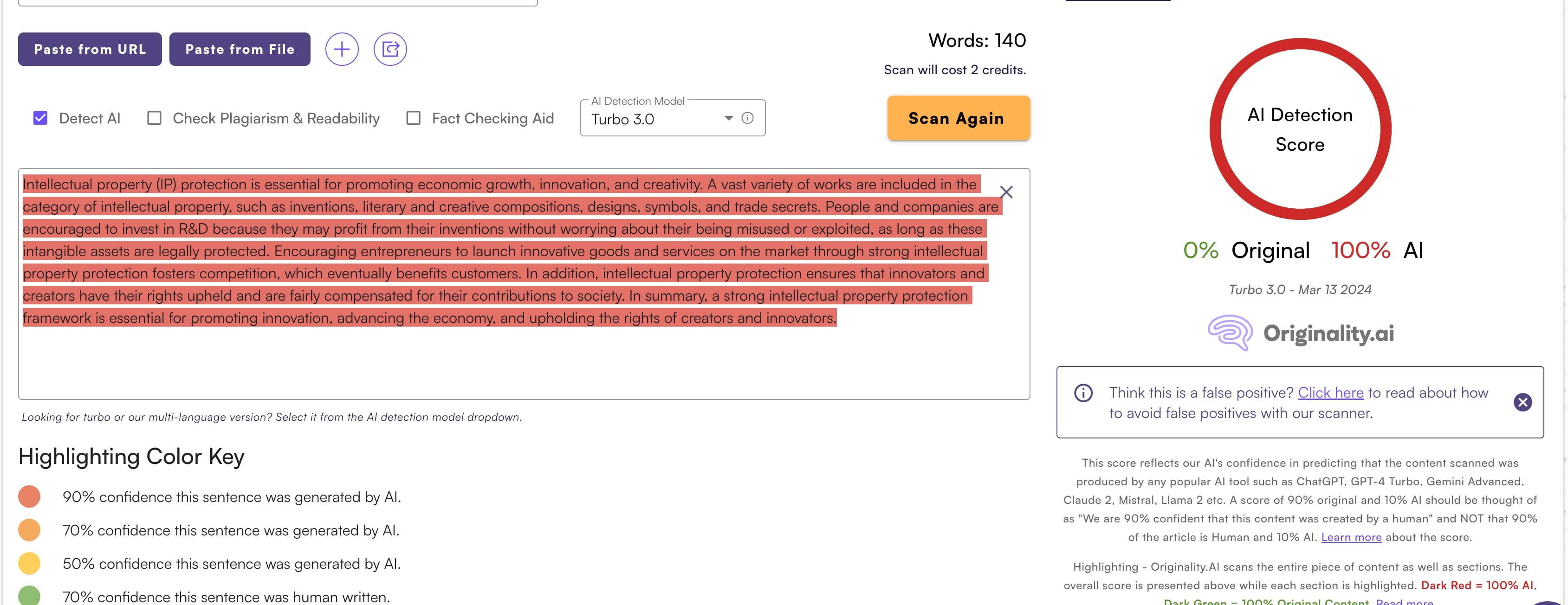 For the second testing paragraph, we are asking ChatGPT to explain the importance of protection towards intellectual property.