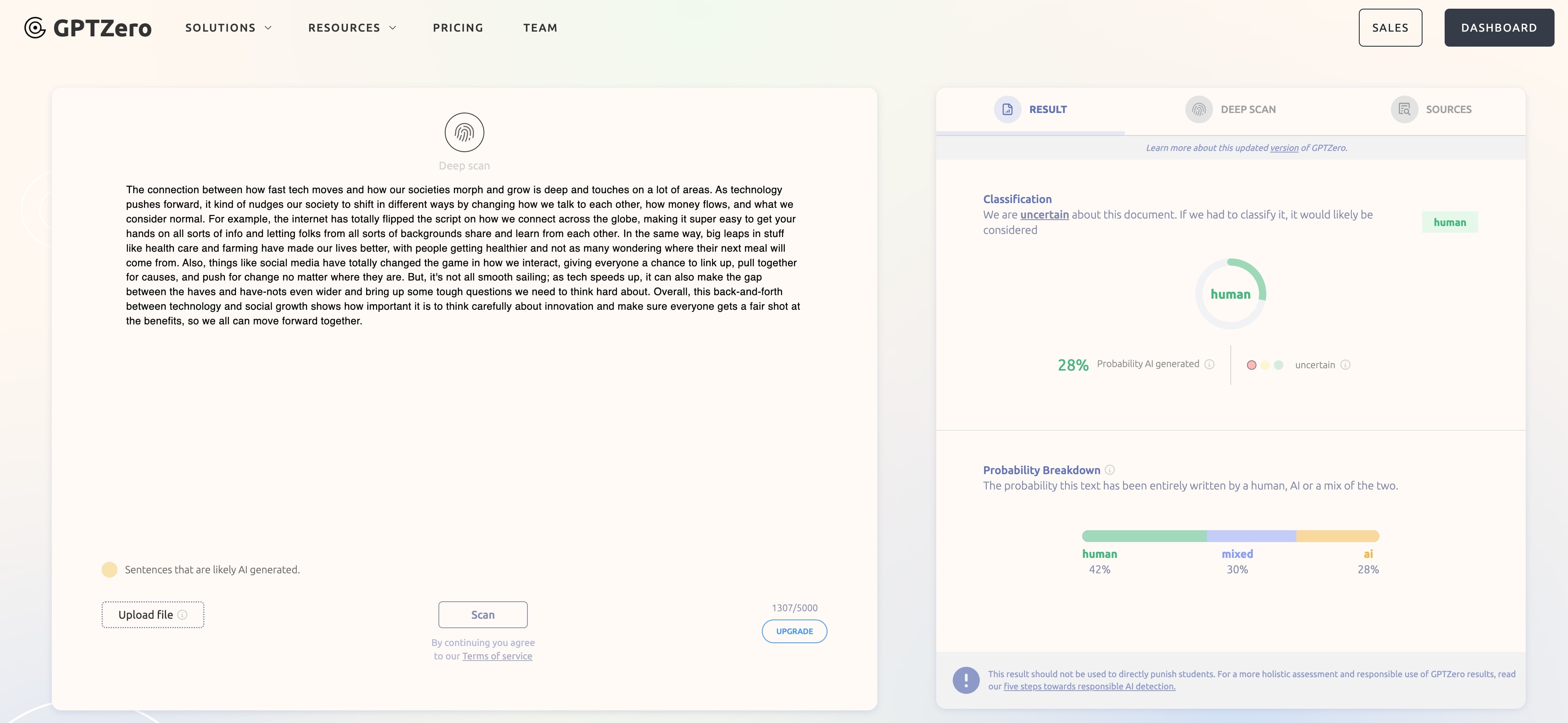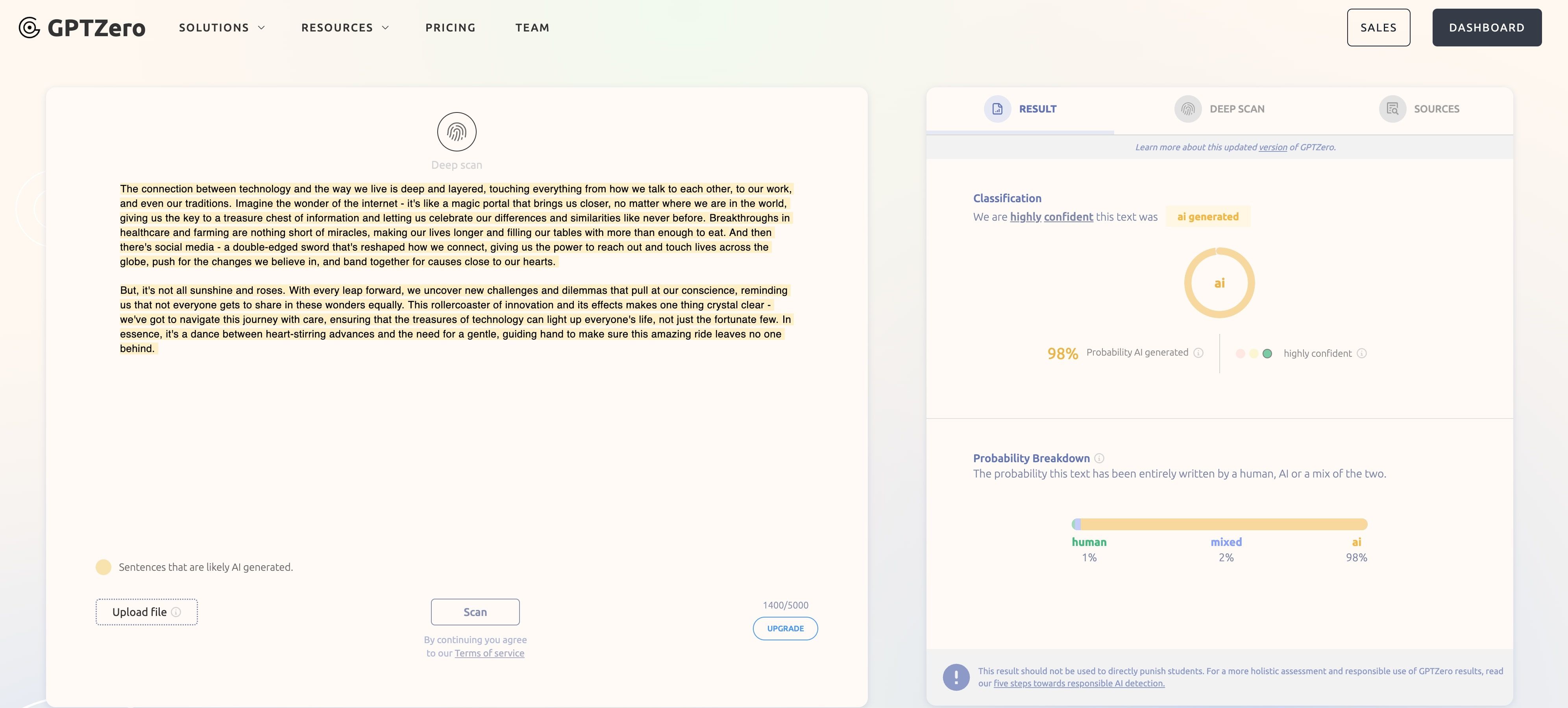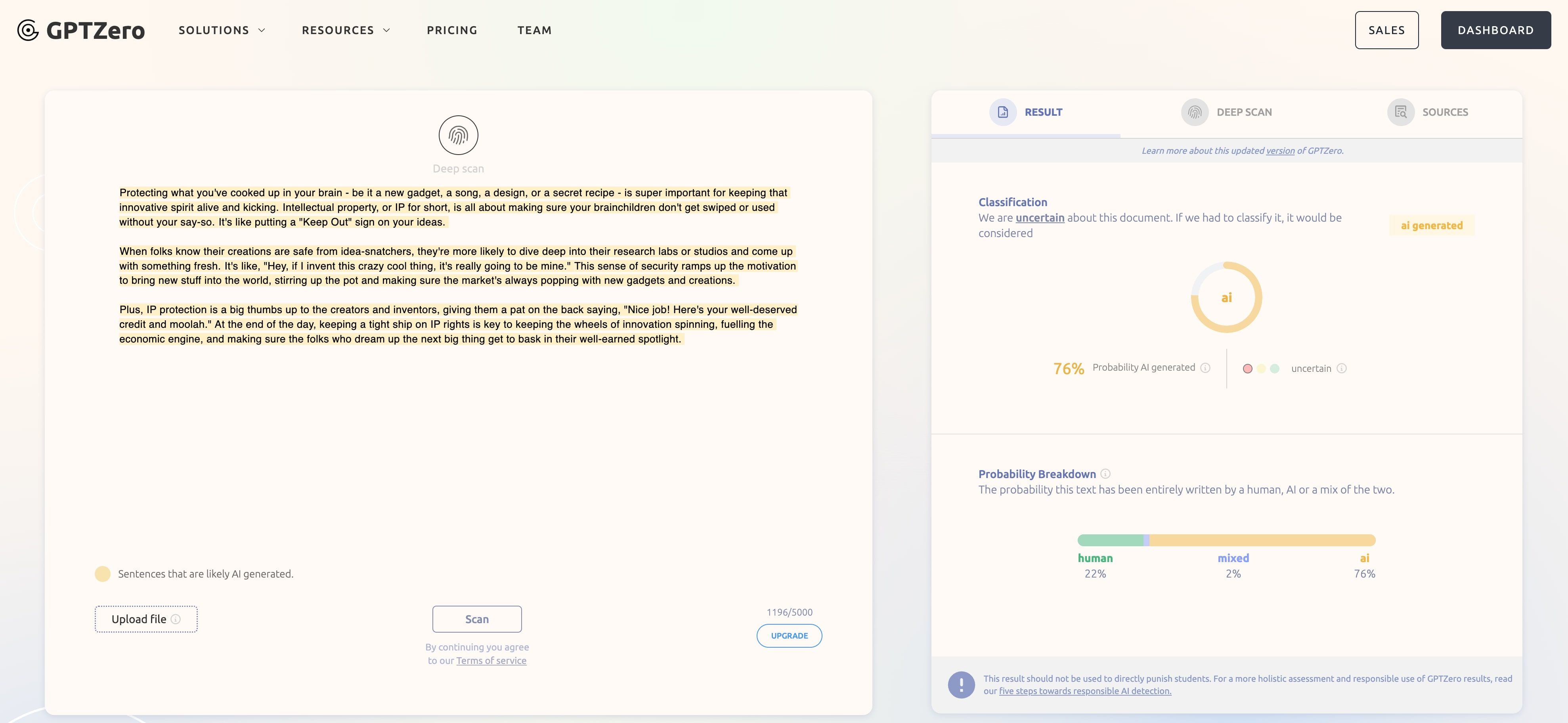 Although the content does look a bit more readable, and with a more relatable tone, the trick is not that effective against the two AI detectors. In order to make it fully undetectable, you will still need additional editing to make the content even more human-like.