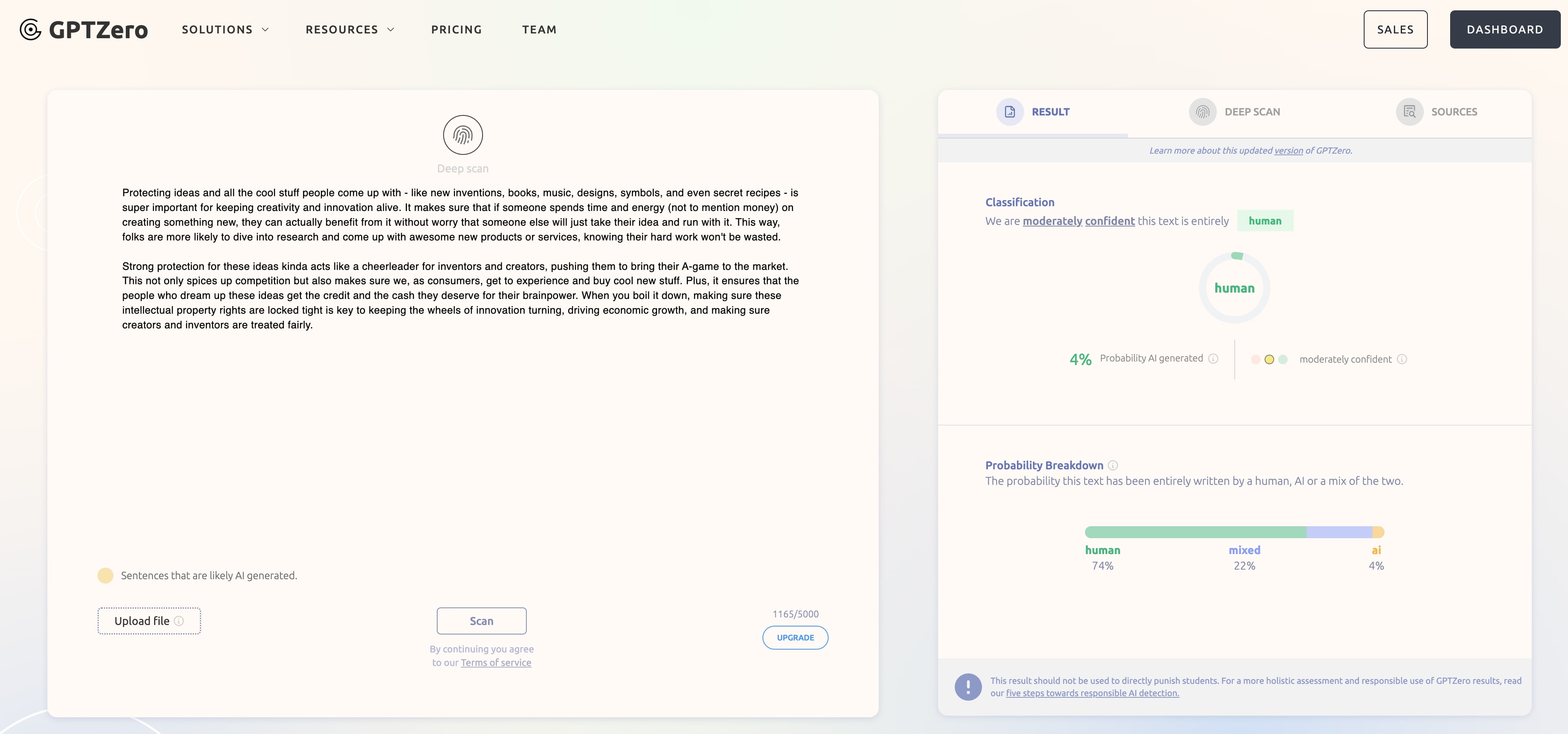 We are truly getting some interesting results here. The content with added human errors can successfully bypass GPTZero, and get an AI score as low as 4%. The logic we mentioned before is actually working.